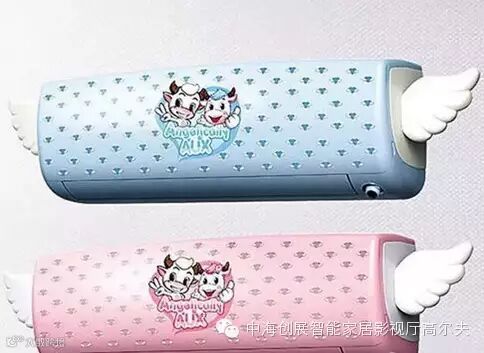 某儿童智能空调针对男孩、女孩分别采用“Blue精灵”和“Baby天使”两款外形,遥控器也采用卡通漫画智慧牛的设计。