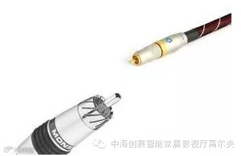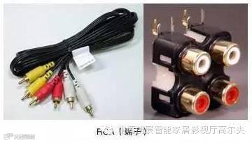 这是目前为止最为常见的一种音/视频接线端子,这种双线连接方式的端子早在收音机出现的时代便由RCA录音公司发明出来,还有一个更老式,也比较奇怪的称呼叫作“唱盘”接头。RCA端子采用同轴传输信号的方式,中轴用来传输信号,外沿一圈的接触层用来接地,也可以用来传输数字音频信号和仿真视频信号。RCA音频端子一般成对地用不同颜色标注:右声道用红色(字母“R”表示“右”或者“红色”)﹔左声道用黑色或白色。有的时候中置和环绕声道连接线,会用其他的颜色标注来方便接线时区分,但整个系统中所有的RCA接头在电气性能上都是一样的。一般来讲,RCA立体声音频线都是左右声道为一组,每声道外观上是一根线。