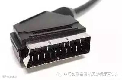 SCART接口也是一种专用的音视频接口,是欧洲强制要求用于卫星电视接收机、电视机、录像机及其它音视频设备上的互连互通接口。标准的SCART接口为21针连接器,外型呈直角梯形,俗称“扫把头”。