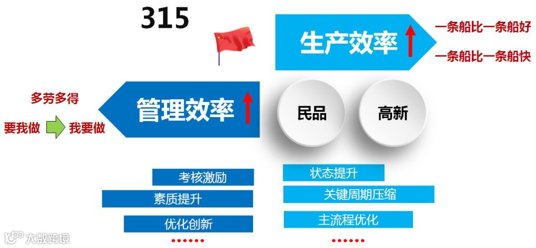 “物不因不生,不革不成”,新形势新任务新使命,伴随着江南资产规模的急剧膨胀,江南造船必须解放思想,主动求变,实现高质量发展。应对形势,江南造船提出了“315”目标,这是江南造船突破结构性矛盾和应对风险的必然选择,也是深入贯彻党的十九大精神,实现高质量发展,落实中船集团高质量发展纲要的具体举措。