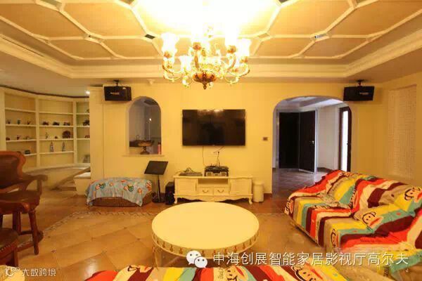 不需要繁琐的遥控器,采用一台无线移动触摸屏,就可以控制所有的影音设备,还可以实现一键场景打造(灯光、窗帘、AV影音设备联动控制)。坐在沙发上,按下触摸屏“观影”按键,灯光调整最佳影院照度,电动窗帘自动闭合,电动幕布缓缓降下,投影机、功放机、高清播放机依次打开,一键进入观影状态。