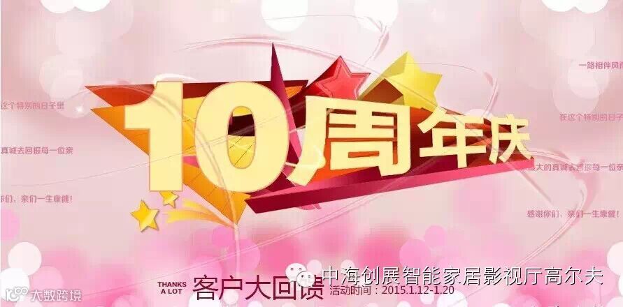2015年,江苏中海智能成为上海仪电张家港地区的独家代理商,并携手仪电首次在港城推出100寸激光电视,我司分别在本部海陆重工大厦6楼,红星美凯龙以及九洲家居设有展厅,欢迎各位前来体验。仪电十周年,公司响应号召,凡在庆典期间购买100寸激光电视,可享8.8折优惠,还有更多大奖。中海智能期待您的到来!