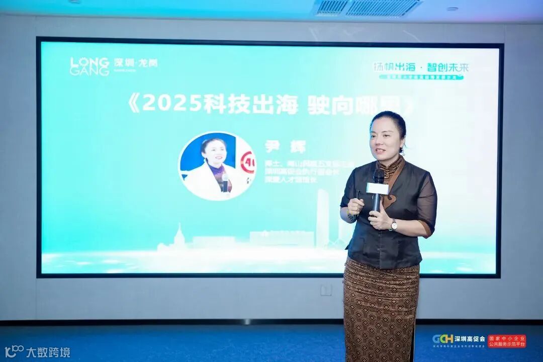 此外,深圳高科技企业协同创新促进会执行副会长尹辉从宏观视角分享《2025科技出海驶向哪里》,深入分析科技出海的战略趋势与全球化布局方向,为与会企业提供了宝贵的市场洞察和实战经验。