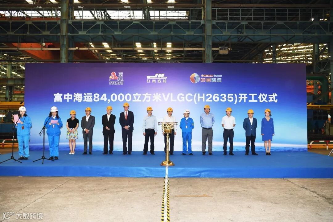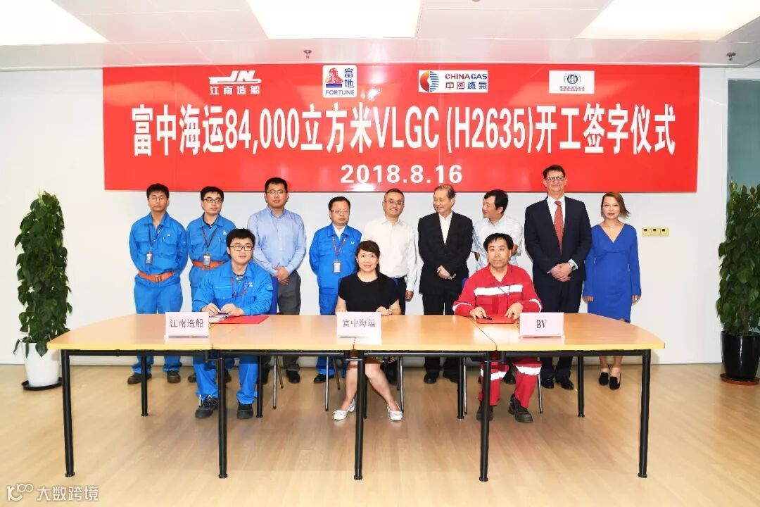 8月16日,江南造船举行H2635船开工及签字仪式,该船系江南造船为富中海运建造的84000立方米VLGC首制船,富地石油、富中海运、中燃华辰公司、中国燃气、上海中油能源控股有限公司、华光船务、中船租赁、BV船级社、江南造船的相关负责人参加仪式。