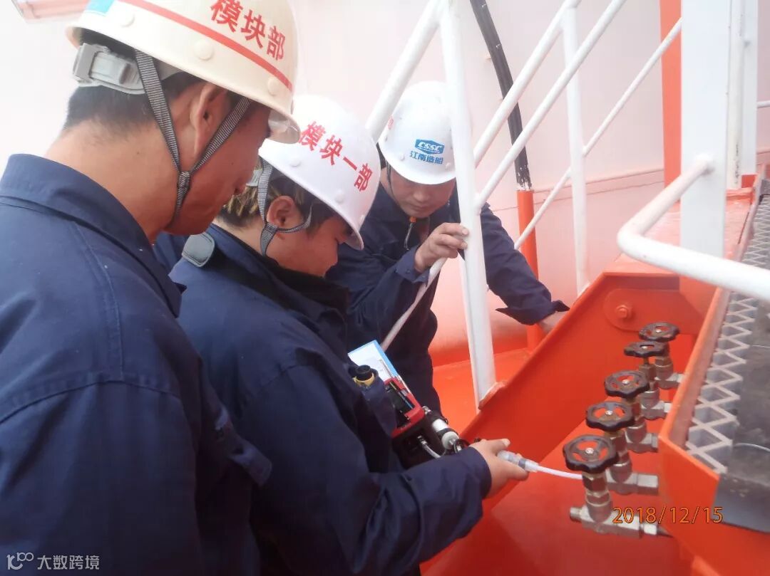 2018年12月10日,H2576船开始气体试验出航,仅用7天就完成了原计划10天的任务。生产运行二部曹新光介绍,“气体试验开始前,总装一部在两周内完成了液货系统所有的调试和报验项目,保证了气体试验期间所有设备的平稳运行;模块一部高质量的液货系统安装和检查工作,保障了气体试验期间所有管路和设备未出现丝毫问题。”
