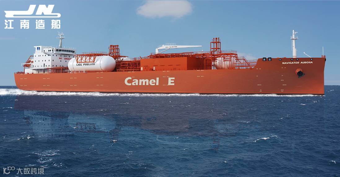 “Camel E”型37000m³ LEG气体运输船是江南造船自主研发建造的全球首创船型,目前江南造船已经成功完成四艘该型船的建造,全部交付船东。