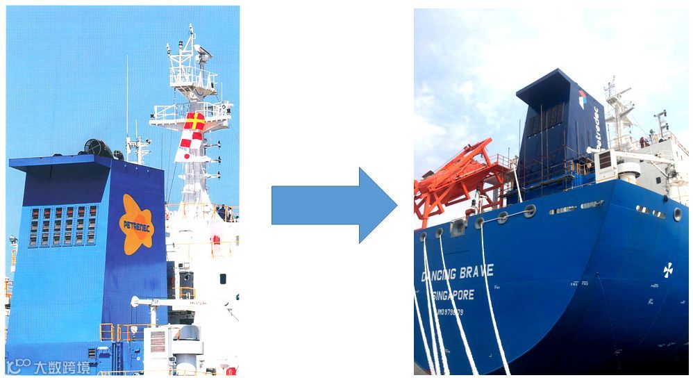 在本船建造过程中还有一段小插曲。临近交船前Petredec联系江南造船,因其公司标志进行了变更,希望江南造船可以协助其更改H2575船烟囱上的公司标志,并将烟囱的涂装颜色更改为新的颜色。江南造船项目组立即根据船东提供的图样进行了放样加工,克服了周期紧张、油漆配色等困难,最终赶在交船前完成了H2575烟囱标志的更新,并摄制了宣传片,获得了船东的赞誉。