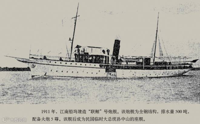 “联鲸”号起义后,编入国民政府海军部第一舰队。但它时常担任革命军领袖人物的座舰。1912年10月25日,孙中山先生曾乘坐该舰到江西视察。