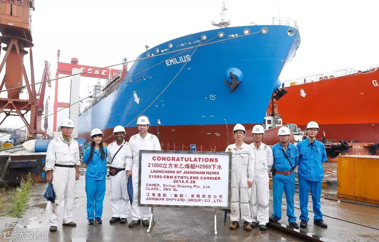 2016年9月28日,江南造船为Petredec Limited公司建造的21000立方米乙烯船(H2569)及为Southwest Maritime Limited公司建造的84000立方米VLGC(H2571)完成出坞节点。“Lusitano E”及“Panda 84P”两型船舶家族再次迎来新成员。