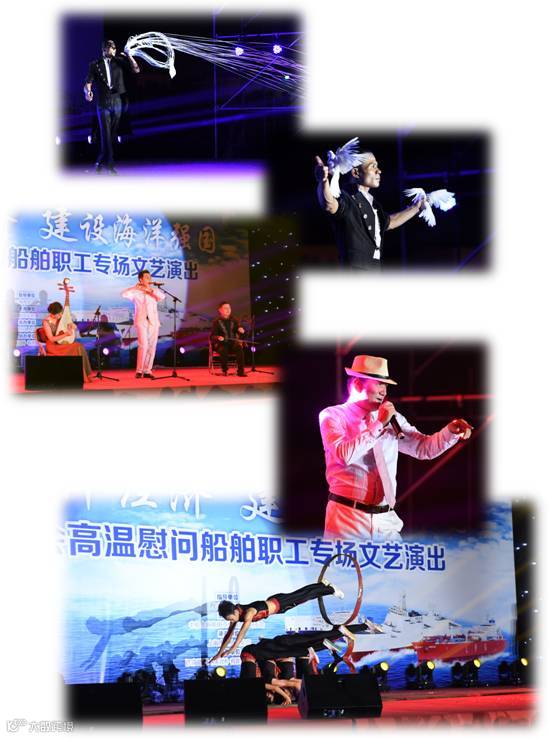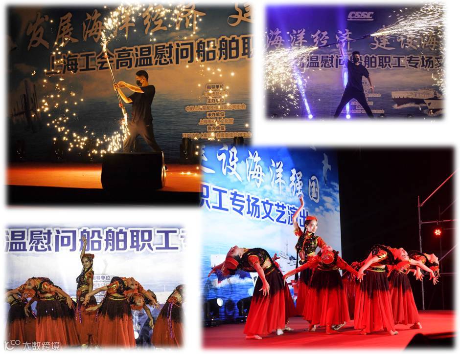 8月10日,由上海市总工会指导,中船上海船舶工业有限公司工会主办,上海市工人文化宫承办的“发展海洋经济、建设海洋强国”上海工会高温慰问船舶职工专场文艺演出在江南造船举行。在全体演职人员的努力和江南造船的全力配合下,10多个载歌载舞的表演掀起场上阵阵高潮,引得现场观众掌声连连。市总工会主席莫负春、副主席桂晓燕等一行来到现场,看望职工们,并一同观看了演出。