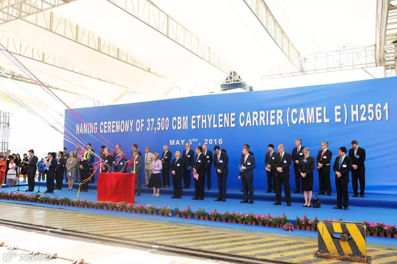 5月3日上午,江南造船为航海人气体运输公司建造的目前世界上最大的乙烯运输船——37,500m³乙烯运输船(Camel E)在江南造船命名,这艘是江南造船为英国航海人气体运输公司建造的4艘37,500m³乙烯运输船中的首制船。