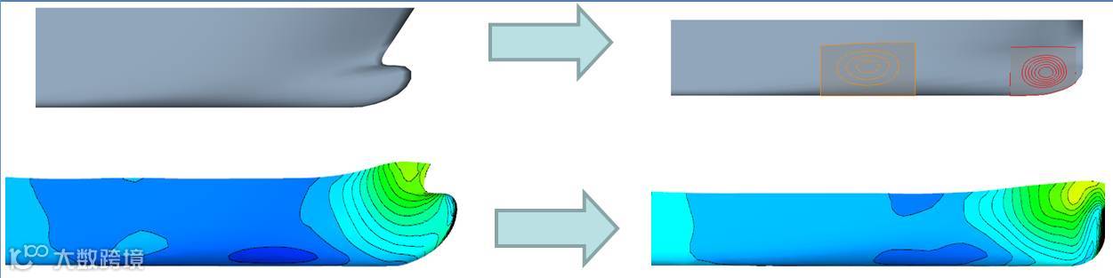 Camel E的研发团队将江南造船专利的 (VS-Bow) 隐形球艏技术引入到小方形系数船型的线型研发之中,并针对跨大西洋运输的航路进行适应性优化,成功研发出了具有隐形球艏的乙烯运输船线型方案。