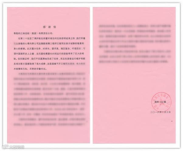 海军152舰写给王智的感谢信