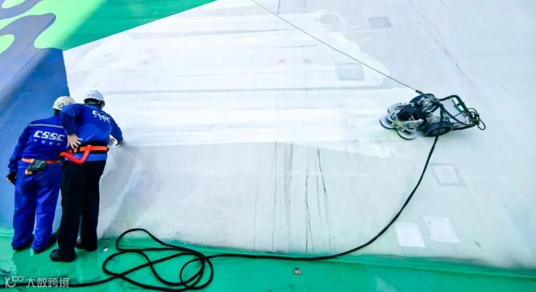 近日,在H1800A船上,涂装二部运用拉毛机器人在船体外板平稳移动,灵活执行拉毛作业。与传统人工拉毛方式相比,它的作业效率更高,工作质量稳定,进一步缩短涂装施工周期。