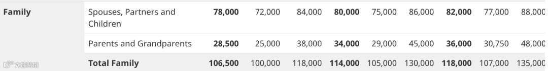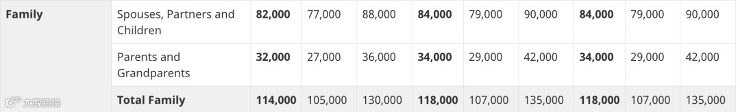 除了经济类,家庭团聚移民将是所有移民中的第二大类,在未来三年也将有不小的增长。2024年的总名额为11.4万名,到2026年将达到11.8万名,总比例维持在24%。