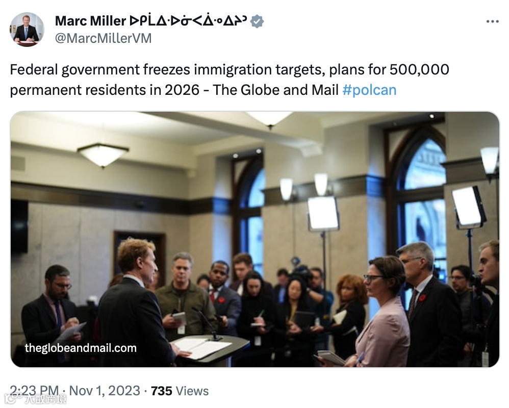 在本次发布会中,加拿大移民局正式宣布,2025年之后的移民目标将稳定在一年50万人,结束连续5年增加的趋势。