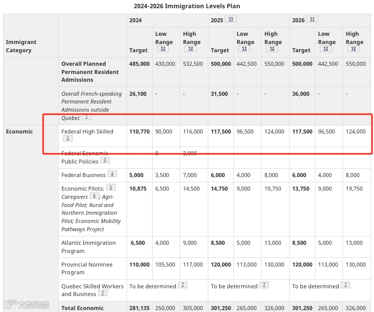 根据计划,2024年加拿大将欢迎281,135名经济类移民,占年度目标的58%。从2025年开始,加拿大将近60%的移民都将会是经济类的,共30万名额。