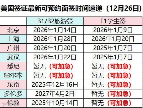面签时间速递(12月26日)