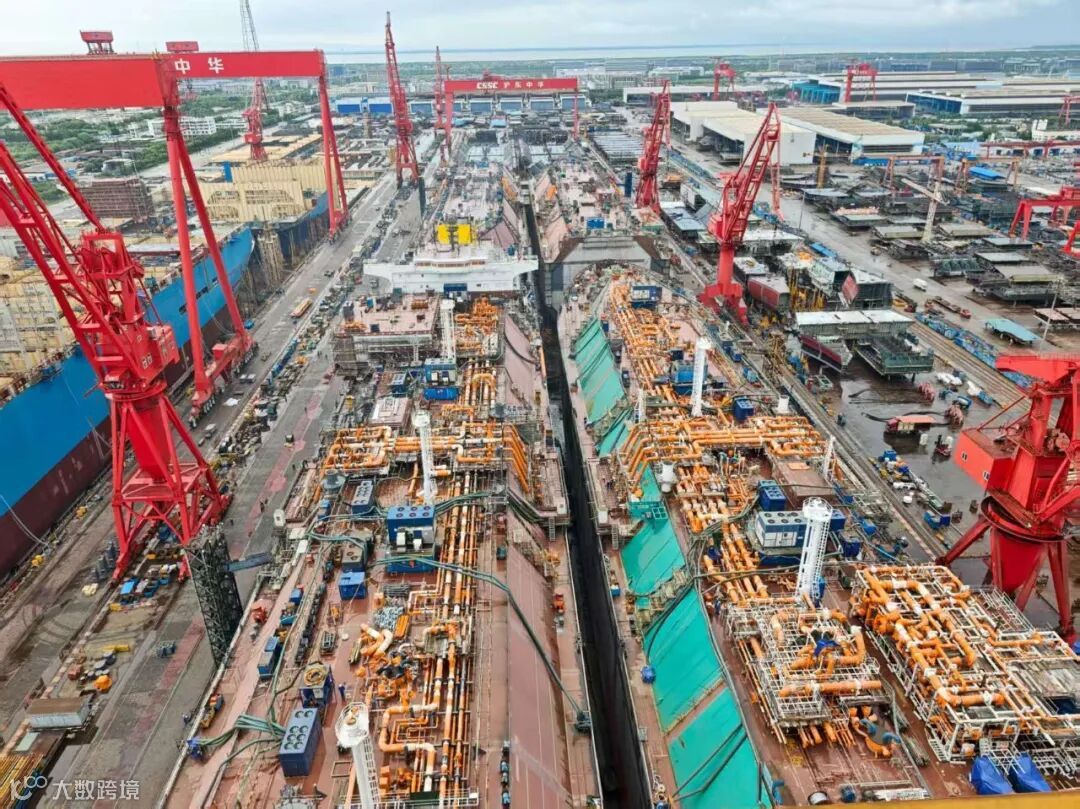 7月16日,西部厂区2号船坞内,LNG船H1887A、H1894A的机舱棚总段在完成涂装后相继完成吊装作业,标志公司将原码头作业内容创新前移至总组阶段完工,总段完整性工作取得重大突破。