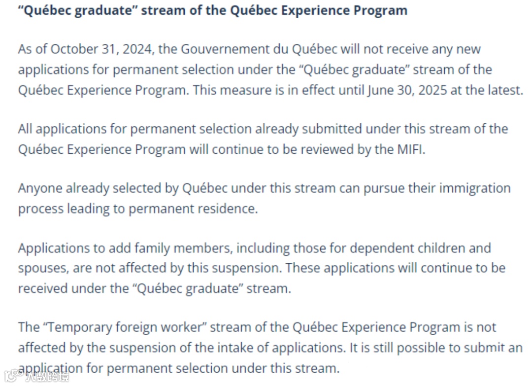 按照魁省移民部的说法,两个项目计划暂停8个月,持续至2025年6月30日。10月31日之前收到的申请,将会得到正常处理。