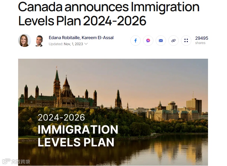 到2024年,该国的目标是接纳48.5万新移民,在2025年和2026年,加拿大1每年将迎来50万新移民。