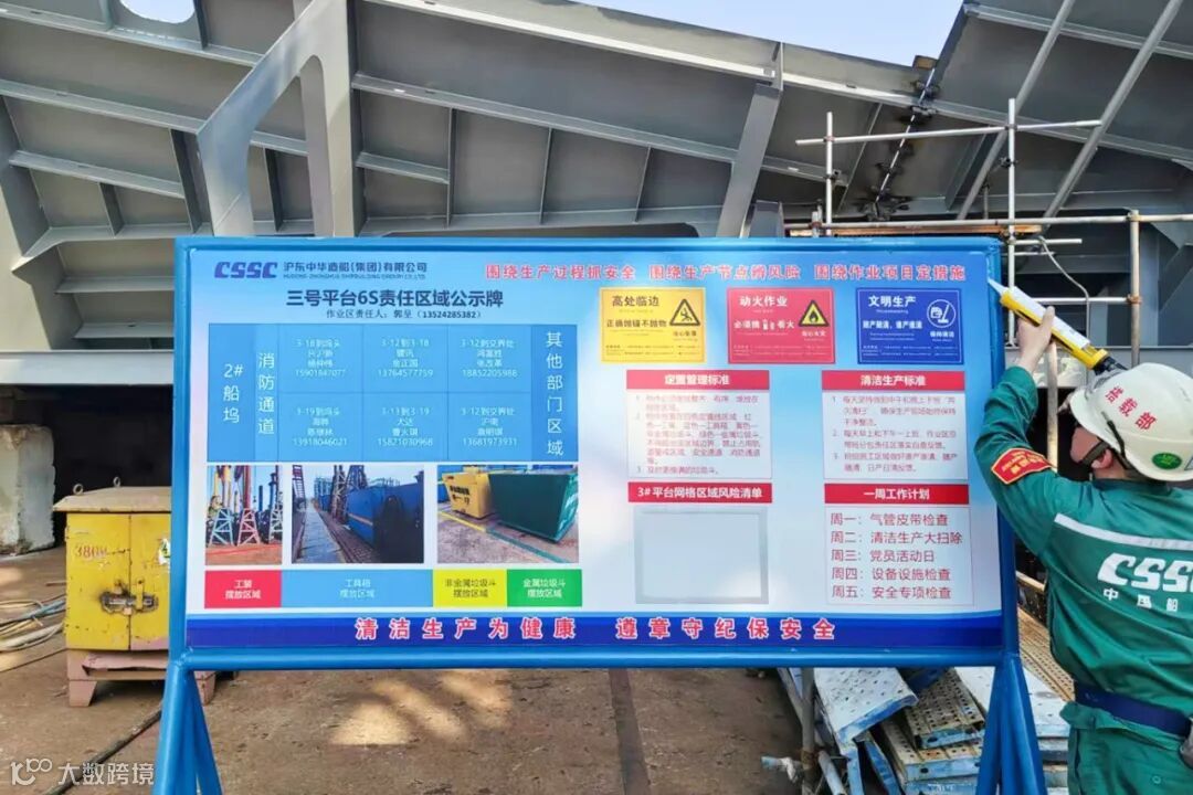 安环保卫部在6~8月间先后对船坞、码头、平台、风雨棚、厂房等生产现场分批次、分阶段开展6S达标验收工作。各生产部门积极参与、相互协作,并将6S达标验收与党建引领清洁生产行动相结合,党员作表率,带领员工开展一系列清洁整治无死角活动,确保多个网格区域顺利通过达标验收。