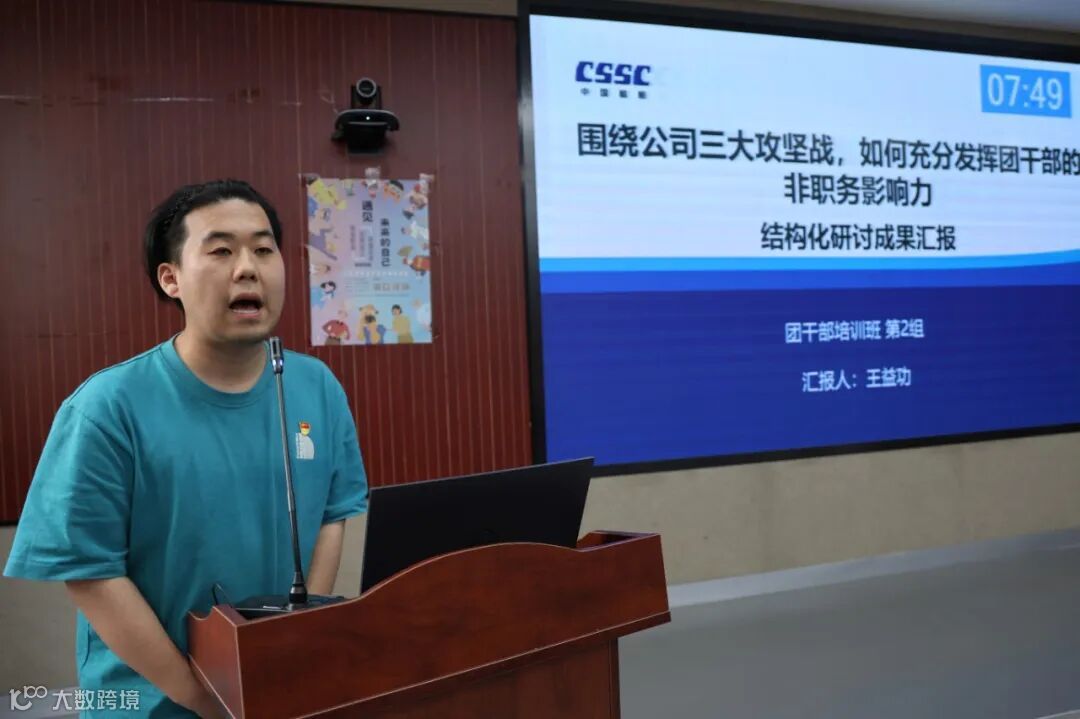 公司团委副书记带领全员开展青年精神素养提升工程“三个问题”大讨论,为学员讲授“新时代、新青年、新作为”主题团课,交流讨论团干部在百年未有大变局下如何立足本职岗位,发挥青年优势,堪当时代重任。来自总装二部的梁宇煊代表全体参训学员进行学习总结,表示将秉承并发扬伟大建党精神,进一步牢记峥嵘历史、感恩革命先烈、明确发展现状、把握未来机遇。分组讨论组长代表小组发表学习总结,交流培训体会。