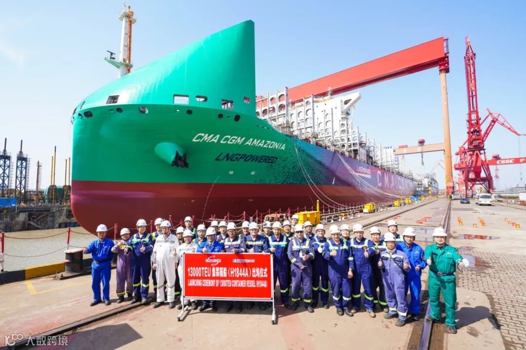 ▲ 13000TEU 双燃料箱船(H1844A)出坞仪式