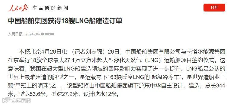 4月29日,被这样一条消息霸屏:18艘全球最大27.1万立方LNG船!造船业最大单笔新船订单“横空出世”!消息如此振奋人心,提振士气。我内心无比激动和自豪,我要坚定信心、奋发作为,带领部门干部员工践行“三赢”理念,突出价值创造,打赢三大“攻坚战”,夯实新质生产力发展基础,践行一名共产党员的职责与使命,为公司LNG产能倍增多做贡献。