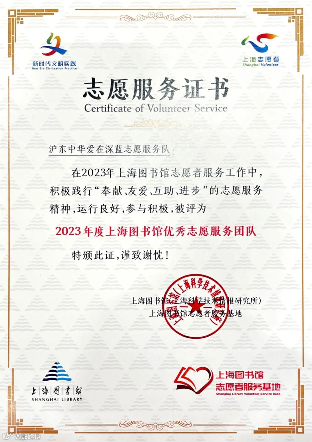 3月30日,公司“爱在深蓝志愿服务团队”获“2023年度上海图书馆优秀志愿服务团队”称号,彰显公司在社会责任和公益事业方面的主动作为和积极贡献。