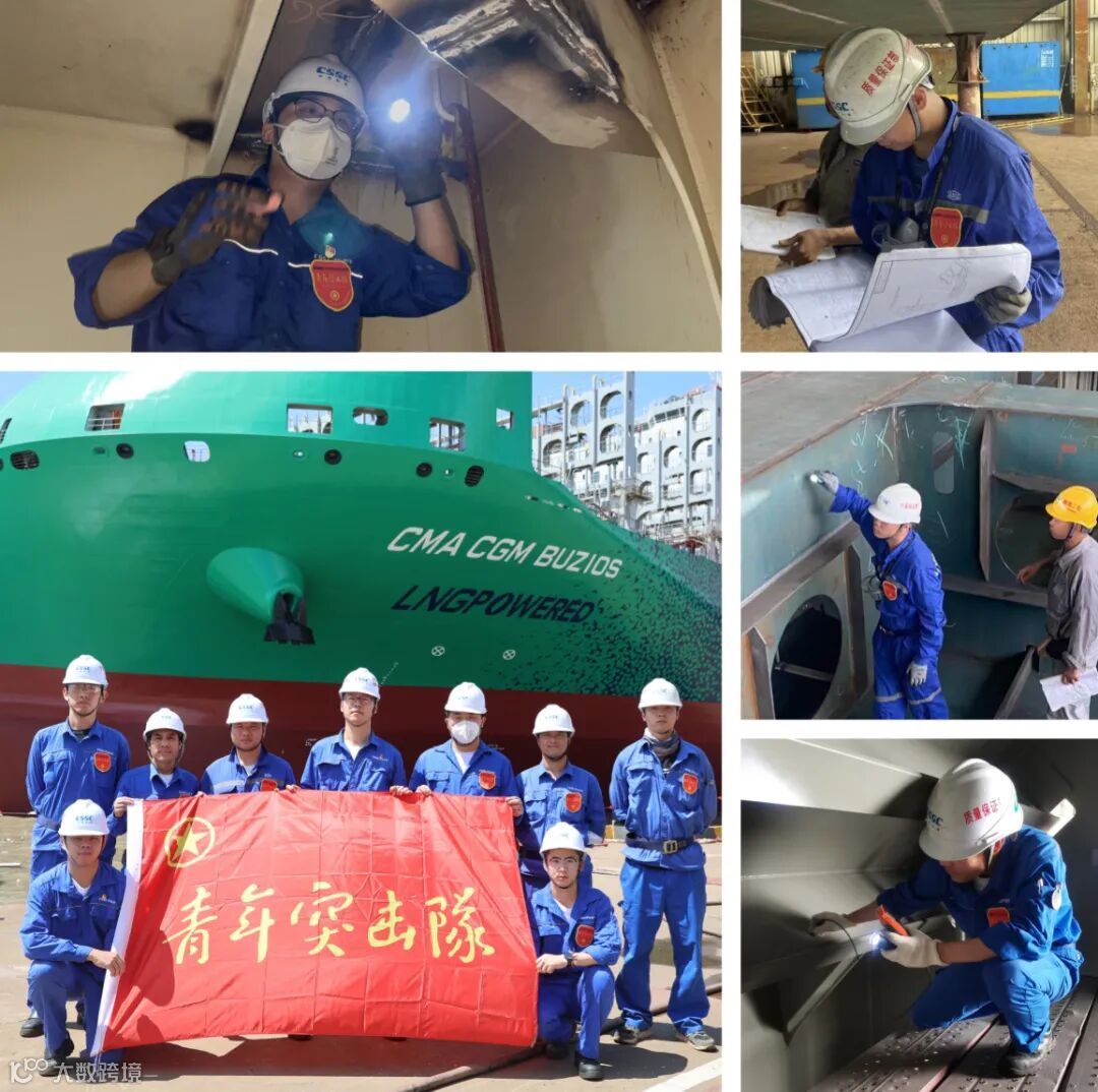 质量保证部在达飞13000TEU双燃料集装箱船重点项目中成立“质量控制青年团队”,他们以党员、入党积极分子、团员青年及科室骨干为核心力量,深入现场,积极协助生产部门解决困难。他们在项目专检时,一丝不苟,严把质量关;在面对船东船检对公司的质量投诉时,客观分析,妥善解决;在面对拉线照光、出坞等重要节点,经常通宵达旦奋战,只为能够一次交验成功。他们深入开展质量管理和党建带团建工作,实行“一线质量管控、工序质量验收”等制度,精细化管理确保项目质量和时间节点。