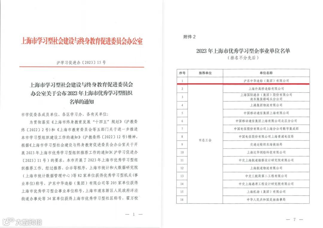 日前,2023年上海市优秀学习型组织评选正式发榜,公司名列榜首,荣获“2023年上海市优秀学习型企事业单位”称号。