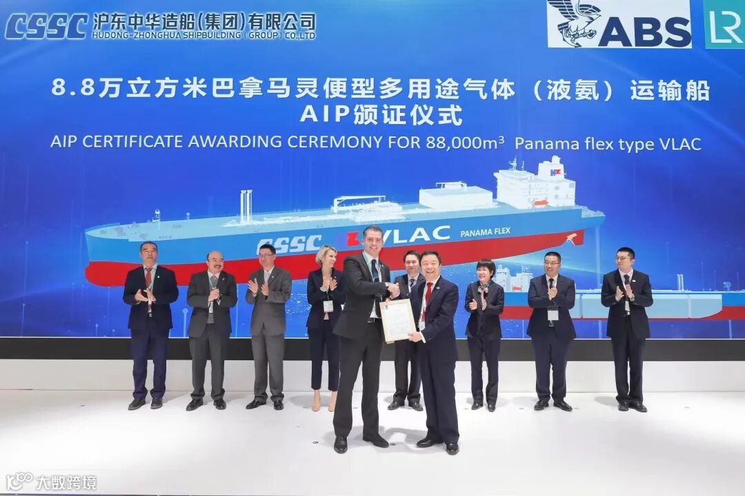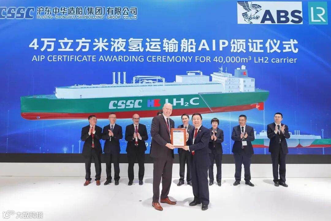 4万方液氢运输船,获美国船级社(ABS)、英国船级社(LR)原则认可。4万方液氢运输船是沪东中华造船(集团)有限公司依托国际市场潜在项目需求,完全自主设计的国内首型运输液态氢气的专用船舶,该船型总长210.00米,型宽32.20米,型深20.00米,设计吃水7.0米,设计航速15节。该船型配置3个液货舱,采用双层真空绝热IMO C型舱液货围护系统,低温液相管系采用真空绝缘双壁管,采用双燃料(MDO和氢气)电力推进系统,燃气模式下实现零碳排放。