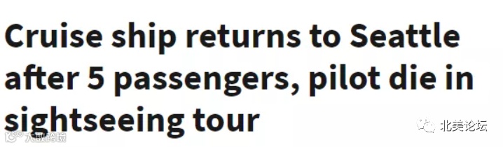 8月5日,在阿拉斯加东南部一架观光飞机坠毁,五位乘客还有一位飞行员全部死亡,警察已经确认了遇难者的身份。7日上午,新阿姆斯特丹游轮载着其他的一些乘客,安全返回到了西雅图。