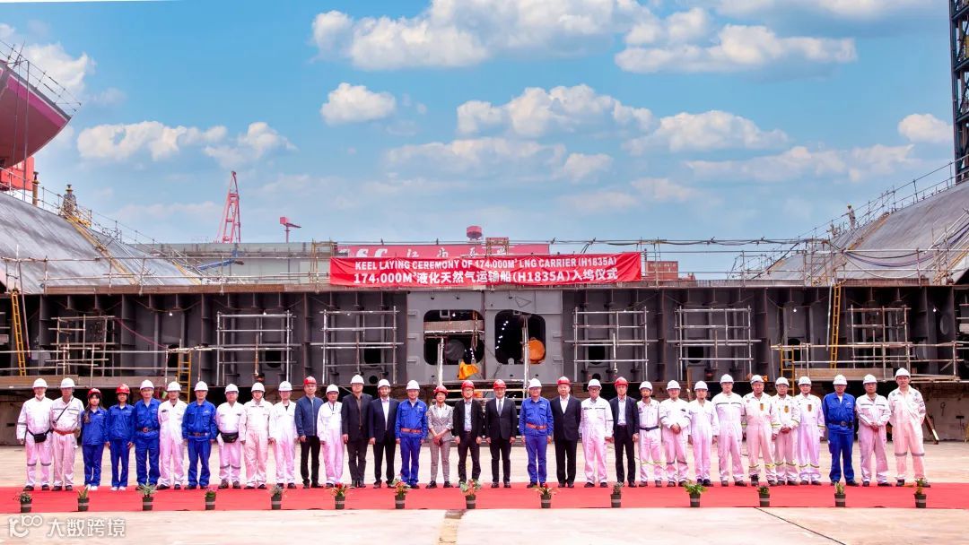 5月10日上午,中远海运中石油国事17.4万方LNG运输船项目5号船(H1835A)在长兴造船基地二号船坞举行入坞仪式。