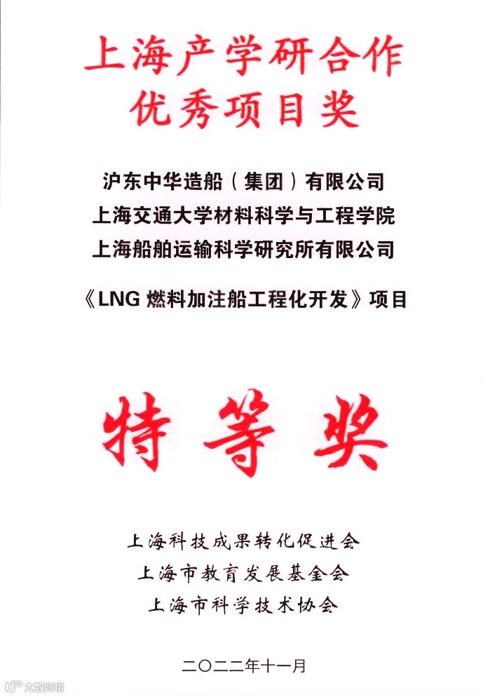 日前,2022年“上海市产学研合作优秀项目奖”表彰大会顺利召开。我公司与上海交通大学、上海船舶运输科学研究所联合申报的《LNG燃料加注船工程化开发》项目荣获特等奖。大会选出40个获奖项目,其中特等奖仅2项。