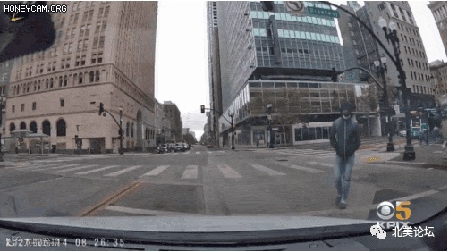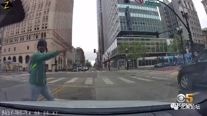 从行车记录仪录下的视频来看,事件发生的时候,这位男子正在奥克兰市中心百老汇和第14街附近的街道上走着。那个时候,这一对夫妇刚送一位亲戚去上班,他们将车停在奥克兰市区第14街以及百老汇的红灯处,车子的窗户都是开着的。