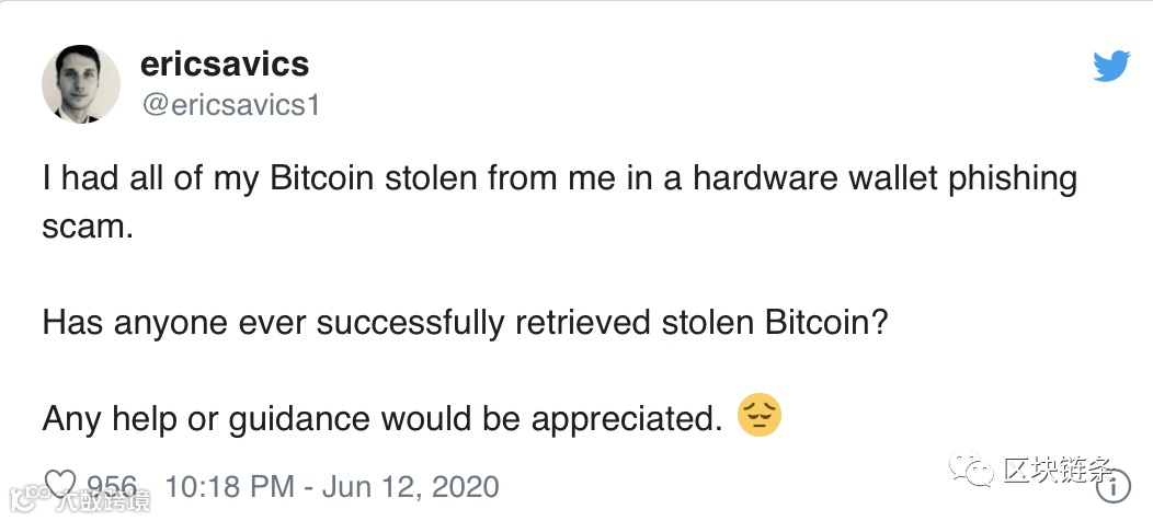 事情发生之后,Savics已向社区寻求帮助,但这些事件通常是不可逆的。“硬件钱包网络钓鱼诈骗从我身上盗走了所有比特币。有没有人能够成功取回被盗的比特币?任何帮助或指导将不胜感激,”他今天在推特上写道。