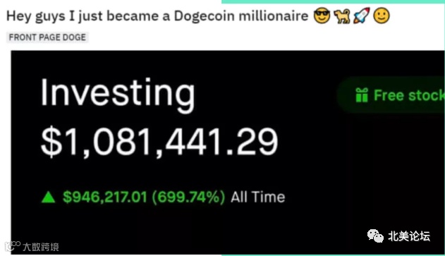 并且大家还真的在使用它,更有甚者竟然因为它,一夜暴富了......“我刚成了狗狗币百万富翁”。“整个晚上,我都盯着屏幕”。一位名字叫做Glauber Contessoto的年轻人,2021年2月,决定投资狗狗币,4月15号下午6点,他正式的成为了一位狗狗币百万富翁,在网上他分享了自己“一夜暴富”的经历,迅速引发了网民们的关注。