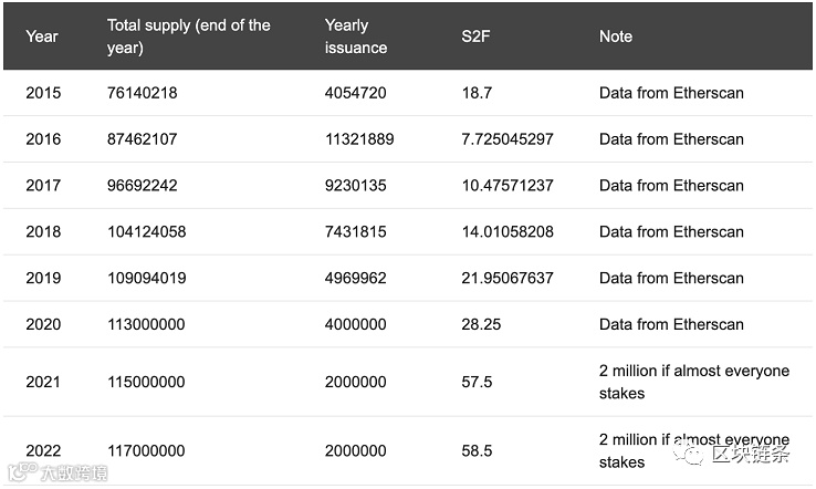 随着股权证明的实施,预计以太坊的通胀率将下降2%。这一降幅接近比特币三次减半后1.8%的通胀率。以太坊的通胀率将达到2.5%,甚至比黄金等贵金属的通胀率还要低。