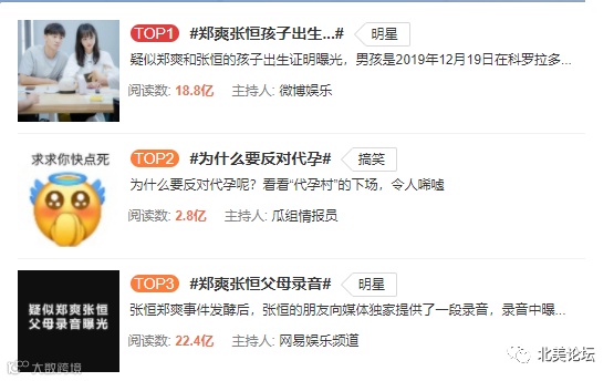 昨天夜里包括今天早上!所有人都被娱乐圈的一个惊天大瓜惊呆了!关于郑爽的惊天大瓜,罕见地霸占了微博热搜TOP3。以清纯校园女生著称的郑爽,被爆出与另一位艺人张恒隐婚隐离,中间还曾到达美国找代孕,在美国代妈怀孕7个月的时候,两人竟然开始闹离婚要求打胎,却由于美国法律限制打胎,腹中的孩子这才逃过一劫,郑爽更是表示说:孩子打不掉也可以送给别人,或者找个机构领养,总之永远不要和孩子见面……
