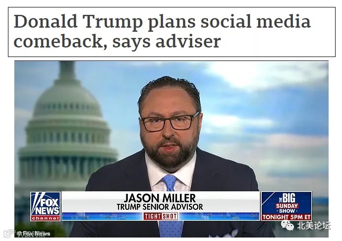 昨日,特朗普高级顾问Jason Miller,对媒体表示:顶流网红即将强势回归,在两三个月后特朗普将重返社交媒体!
