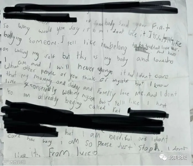 小lvie决定亲自给同学们写一封礼貌但又有力量的信!在这封信里,她说道“我爱自己,这就是我的身体。我非常健康并且没有打算减肥。不管你如何看我的身材,但我深深的知道,我的爸爸妈妈以及家人都爱我!”