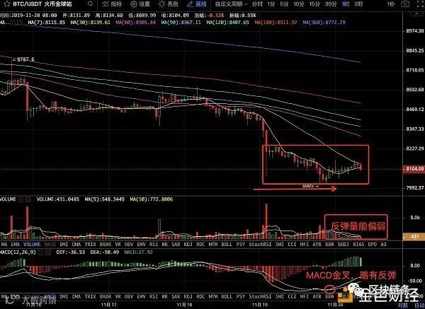 昨天BTC阴跌,继续考验8000美金的短线支撑,量能同步萎缩。从小时线走势看,大盘在8000美金止跌,略有反弹,压力在MA30均线位置,但从4小时和日线级别走势来看,大盘仍处于下跌中继的状态,多头反弹的量能明显不足。因此,大盘现在的状态是止跌但并未企稳,震荡区间在7800-8600美金宽幅区间,仍需要谨慎操作,留意反弹量能的变化,随机应变。主流币走势和大盘保持同步,止跌并有所反弹,但反弹量能太弱,难以支撑起更大级别的反弹走势。国产公链币种昨天下跌破位后,目前止跌,继续观察MA60日均线能否收回,收不回代表盘面走势偏弱,需留意风险。