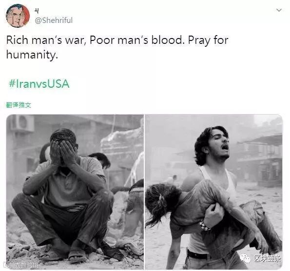 推特上一位伊朗网友@Shehriful则称:“富人开战,穷人流血。为人性祈祷。”看来,至少在两国百姓间,皆无意看到真正的战争发生。