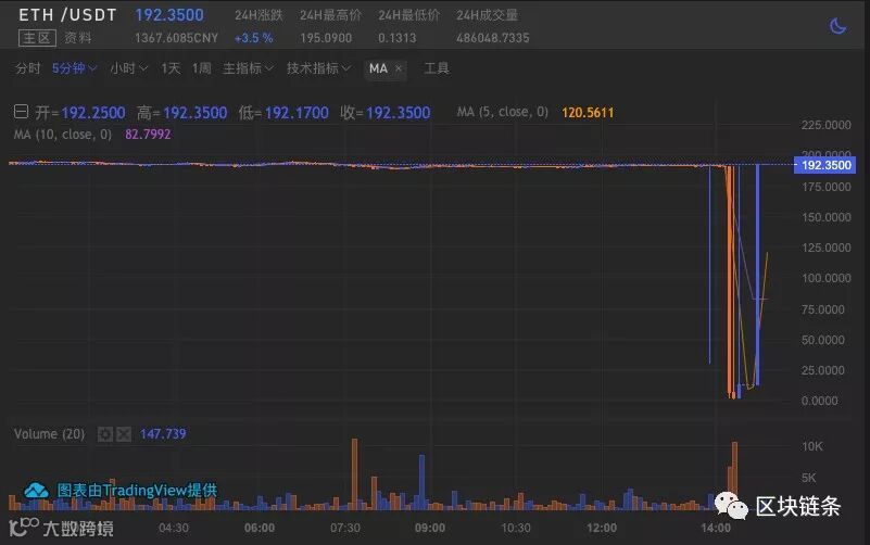 其中,BKEX 上 EOS 价格最高达到1199美元,ETH 价格最低降至 1 美元;Bitmax 上 LTC 一度降到 0.82 美元,ETH 最低达到 0.32 美元,其他币种均受到不同程度影响。