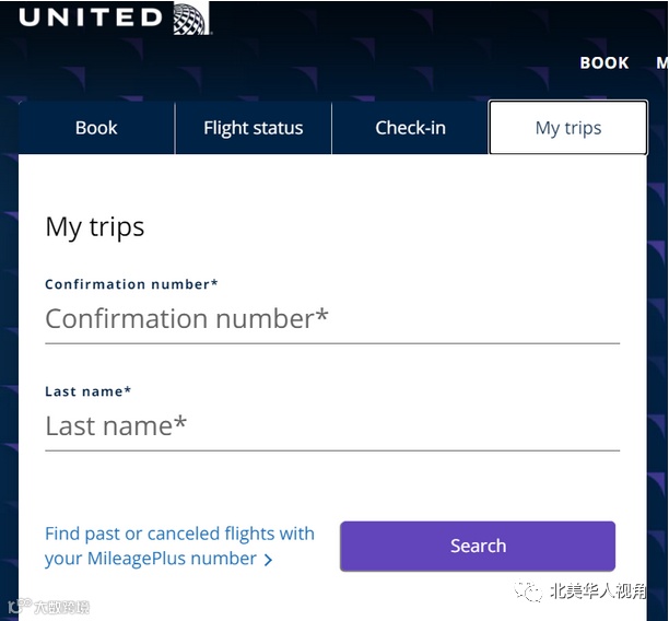 购票乘客可以前往united.com-> My trips界面 -> 使用机票信息查看/确认好自己新的行程。