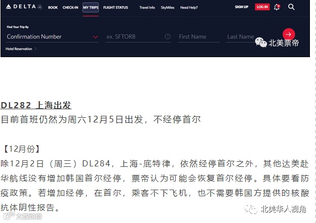 除了12月2日(周三)DL284,上海-底特律的航班,依然经停首尔之外,到目前为止,其他达美赴华航线并没有增加韩国首尔经停,不过小编认为很可能会恢复首尔经停。具体要看防疫政策,若增加经停,乘客到达首尔不用下飞机,也不需要韩国方提供的核酸抗体阴性报告。