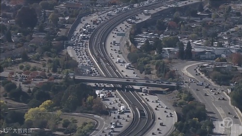 湾区的i-680告诉也一大早就开始堵车,许多人都出门想要点一份火鸡晚餐take out回家和家人一起分享。