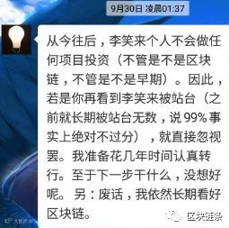 过去李笑来卖的屎,不再赘述,说了脏嘴。也许是李君笑来上辈子菊花最大的那个儿子给李笑来托了个梦,李笑来于不久前忽然宣布退出币圈!